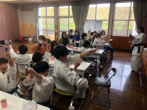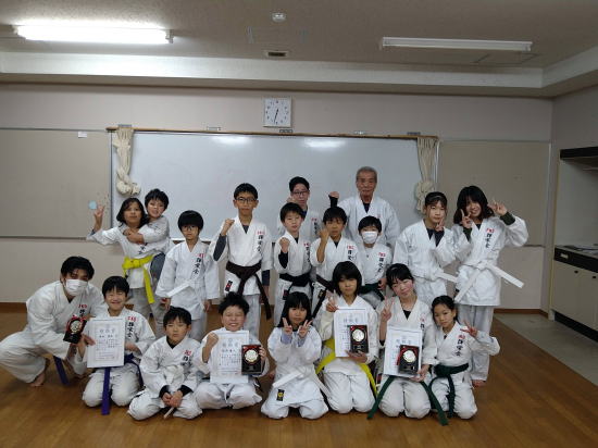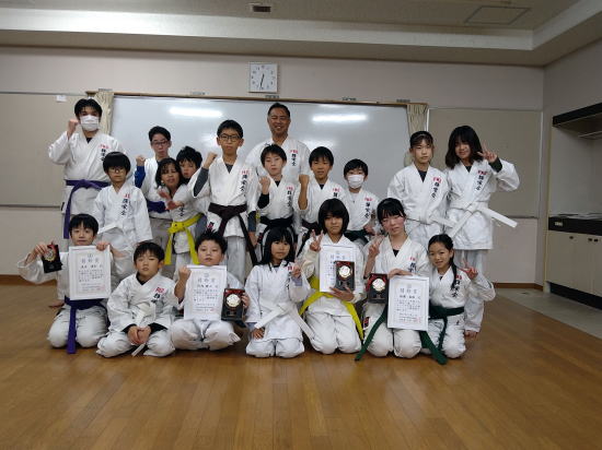 | 審査会の後に輝栄会倉吉・湯梨浜教室合同クリスマス会 ビンゴゲーム、ボールゲーム、大声大会等で盛り上がりました。 =安藤教室長= |